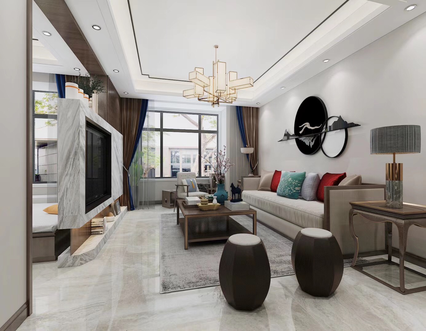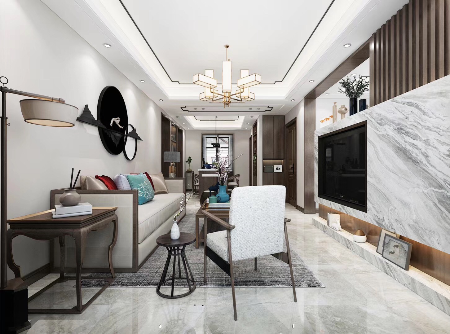 大眾上河灣145平三室兩廳兩衛(wèi)新中式風(fēng)格裝修,新中式風(fēng)格,既能滿足父母對中國風(fēng)的喜愛,又能滿足年輕人對現(xiàn)代感的需求。