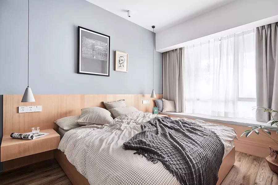 有2個(gè)臥室,還有1個(gè)小書(shū)房,布局真的很不錯(cuò)。整個(gè)家大量搭配了原木家具,清新又自然,文藝又有格調(diào),好喜歡這種休閑又放松的家居氛圍。很多人問(wèn)我客廳刷什么顏色的乳膠漆好,我覺(jué)得淺灰色不錯(cuò),客廳采光特別的給力,好喜歡休閑飄窗的設(shè)計(jì),視野十分開(kāi)闊,看書(shū)休憩都特別的舒服。淺灰色調(diào)不會(huì)顯得過(guò)于沉穩(wěn),在布藝中加些暖色,會(huì)更顯休閑溫馨感。軟裝搭配細(xì)節(jié)放大看一看,哈哈,質(zhì)感真的不錯(cuò),黃色抱枕真的超愛(ài)了!搭配個(gè)小邊幾,擺上綠植,清新又養(yǎng)眼,裝修的時(shí)候墻面別忘了預(yù)留插頭,平時(shí)充電會(huì)更方便些.主臥的采光也特別棒,整個(gè)空間氛圍清新又自然。很喜歡床頭木質(zhì)護(hù)墻板的設(shè)計(jì),和臥床、床頭柜融為一體,十分的協(xié)調(diào)。廚房雖然面積不大,但也打造出U型布局,動(dòng)線(xiàn)合理,操作方便。很喜歡這種時(shí)尚中融入清新色調(diào)的搭配了。冰箱也有了歸屬感!