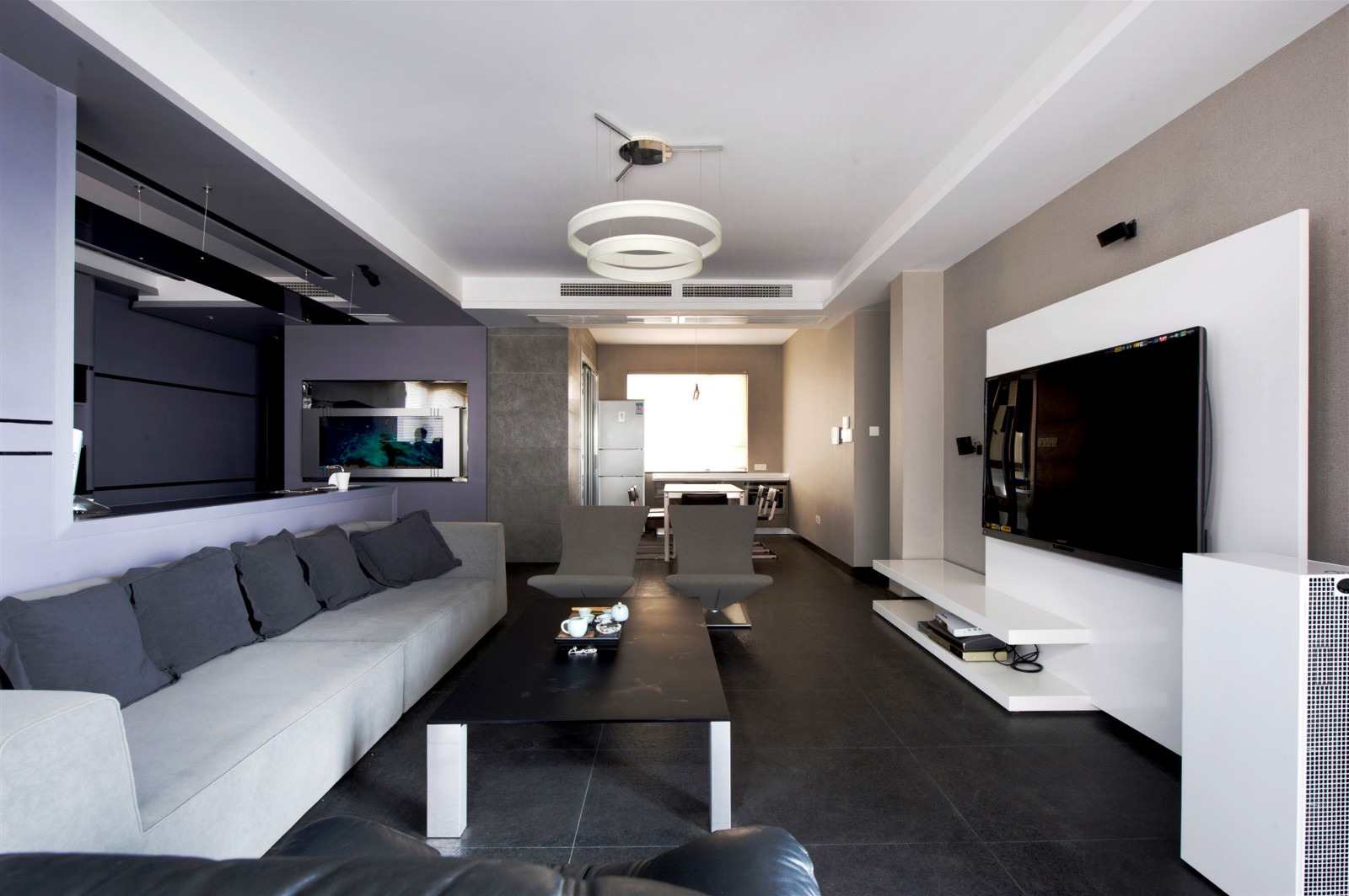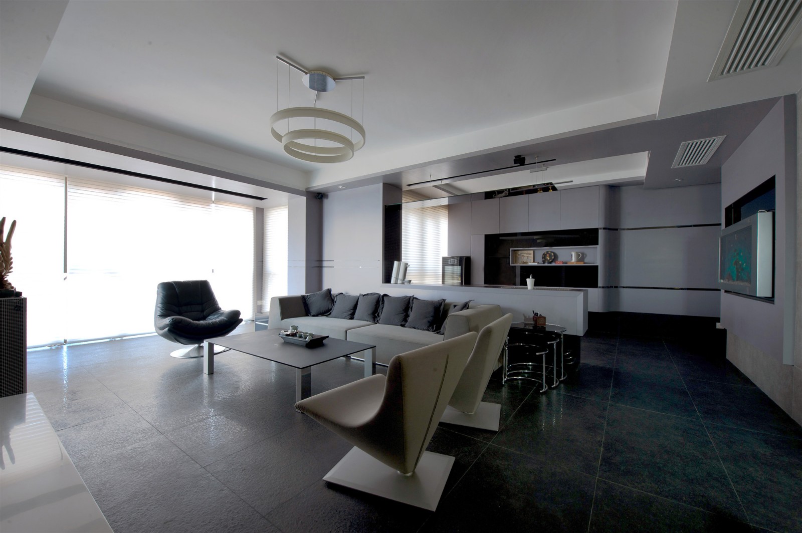 客廳以黑白灰的融合為格調
